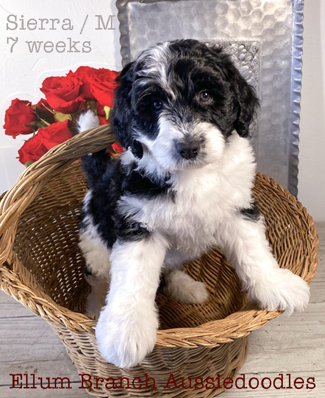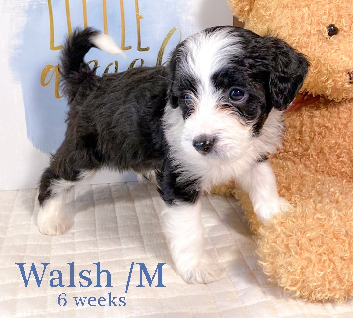 Standard AKC Maddie x Mini AKC Solomon / litter of 9 puppies, born July 12th. Adult weight will be around 34-38 pounds.